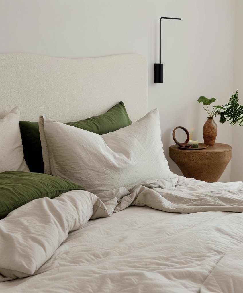 | Wykończenie | Każda poszwa na kołdrę, zapinana na guziki, jest wykonana w 100% z lnu, wstępnie wypranego dla zapewnienia miękkości. Wykończona lamówką w kolorze Forest. |