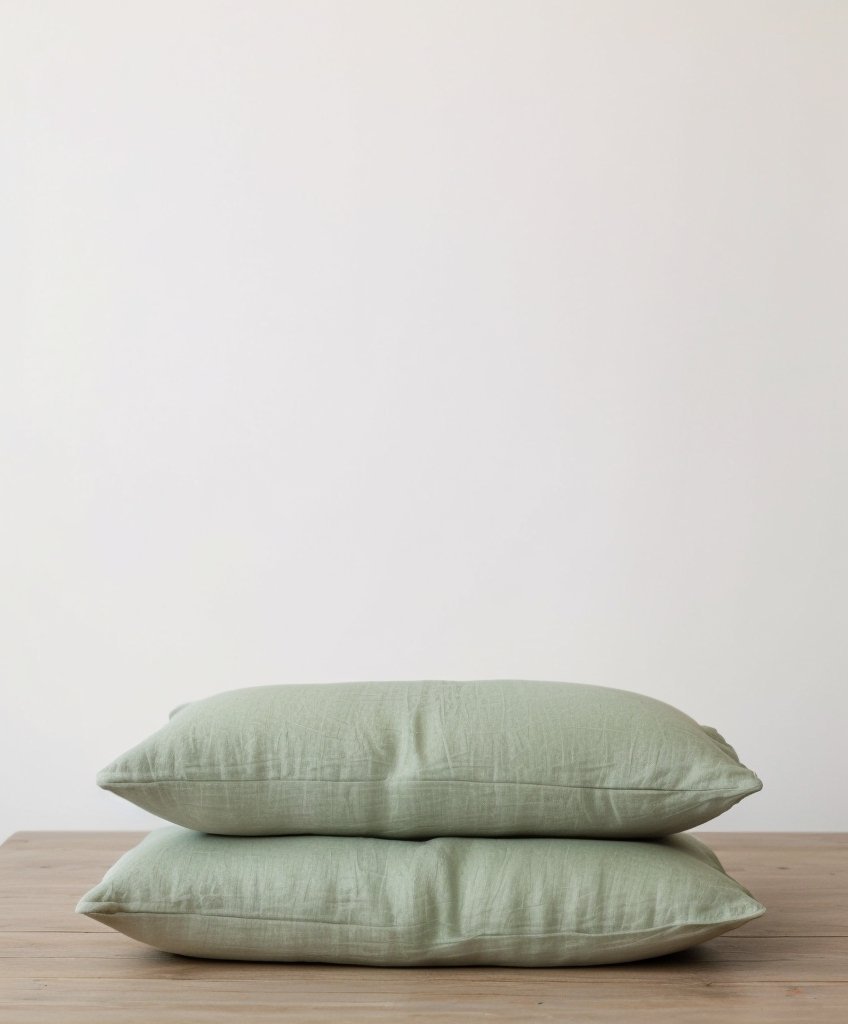 Zestaw 2 lnianych poszewek na poduszki – szałwia